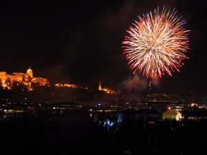 Augusztus 20 - Fireworks down on the Danube. Tibor and I got ourselves into "position" early to watch the amazing display. Firstly there were some air stunts with biplanes flying underneath the chain bridge. Then came the best fireworks display ever!!