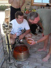 Baja - When the Abrahams first arrived, we drove in tandem (well Rob at least tried to keep up with Tibor's driving!!) to Baja and were very fortunate to be the guests of Gabor and Erika in their amazing guest house. Gabor had already prepared a fish soup. (See left, Noel is finding out just what is in it!) Because the main purpose of the trip was to see the Baja Fish Soup Festival. After having our fill of fish soup we walked into the town where we were confronted with more than 2,000 fires burning cooking the fish soup. An amazing site, especially after the smoke cleared away! Thanks so much Gabor and Erika for making our trip so memorable!!