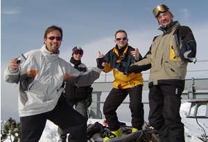 On the top of the mountain getting ready to ski down the beautiful white slopes in Austria.