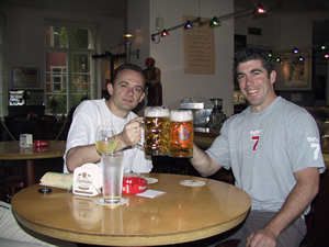Germany - This is Tibor getting rotten drunk celebrating the day we found out we were having a baby! Lucky we were in Berlin where they had steins to help him along. Plus Clay certainly had some drinking tips!