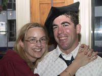 Serean and Clay at the graduation dinner. Look, see Clay gets to wear the funny hat too!